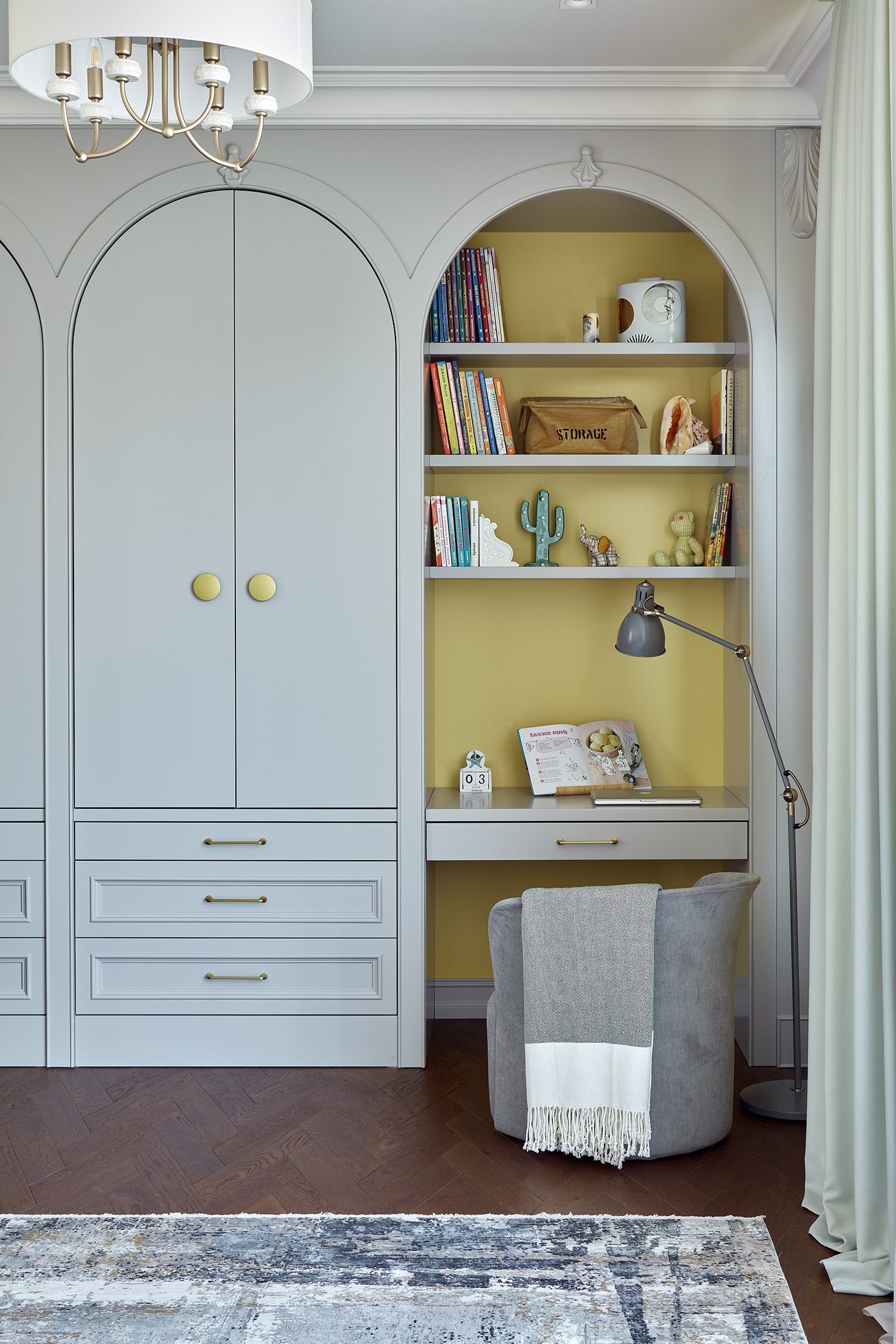 The arcade, created from a work area and wardrobe, is made from sketches and drawings by INTRO by Chak designers