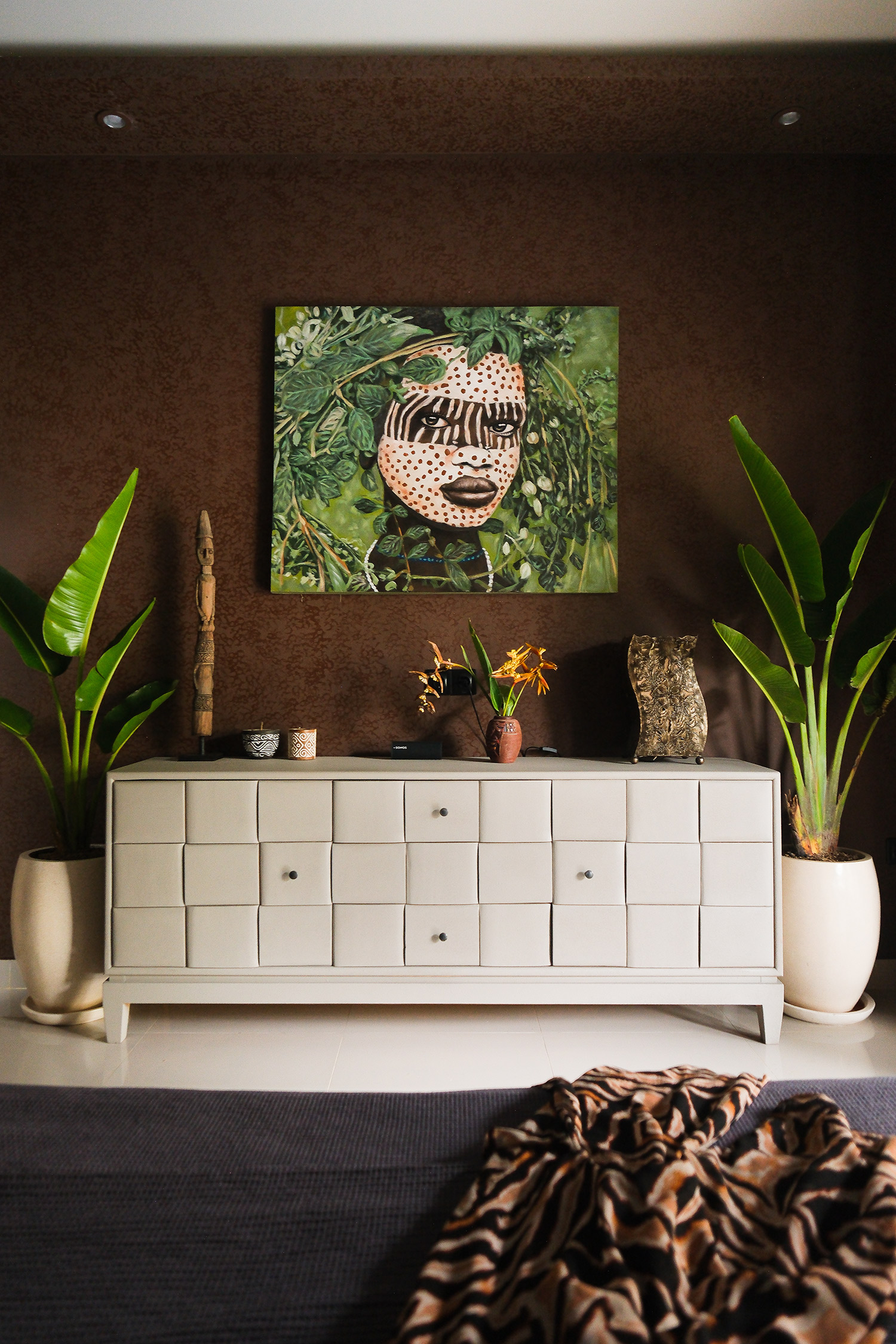 The leopard pattern, hand-crafted by our artist, brings raw energy and primal power into the space. These walls seem to carry the memory of the jungle