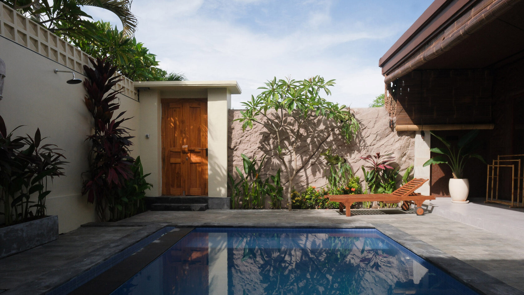 You can immerse yourself in the unique flavor of Bali in the cozy atmosphere of a designer villa. A project by the leading architectural bureau, Intro by Chak. Traditional Balinese ornaments harmoniously blend with functionality and aesthetics in the interior, creating a unique space. The massive bench carved from ancient ebony wood, hand-painted bedheads, and even a rock formation on the fence, seamlessly integrating the villa into the island’s landscape, are not just decorations, they are the language through which the villa speaks to its guests.
