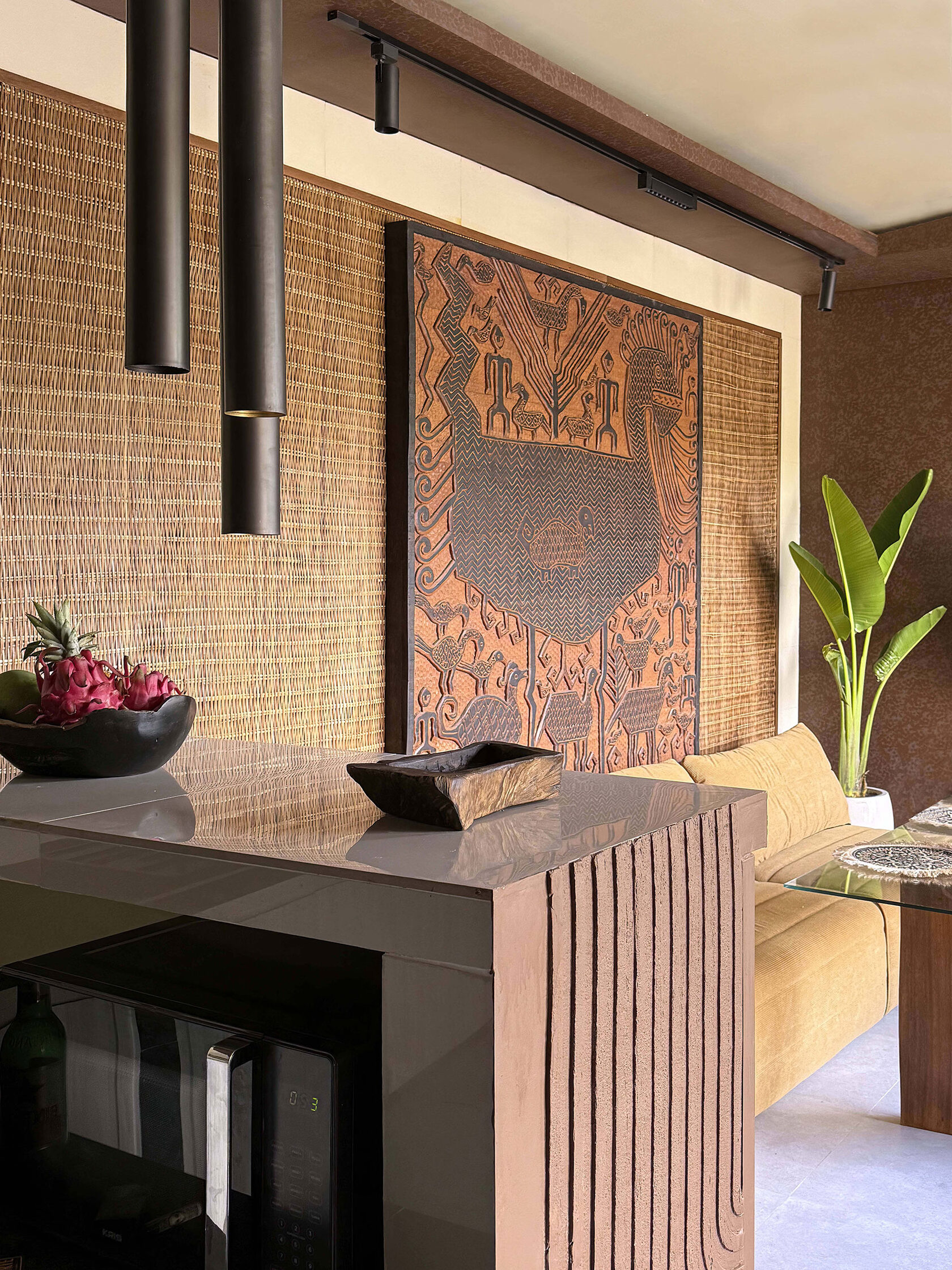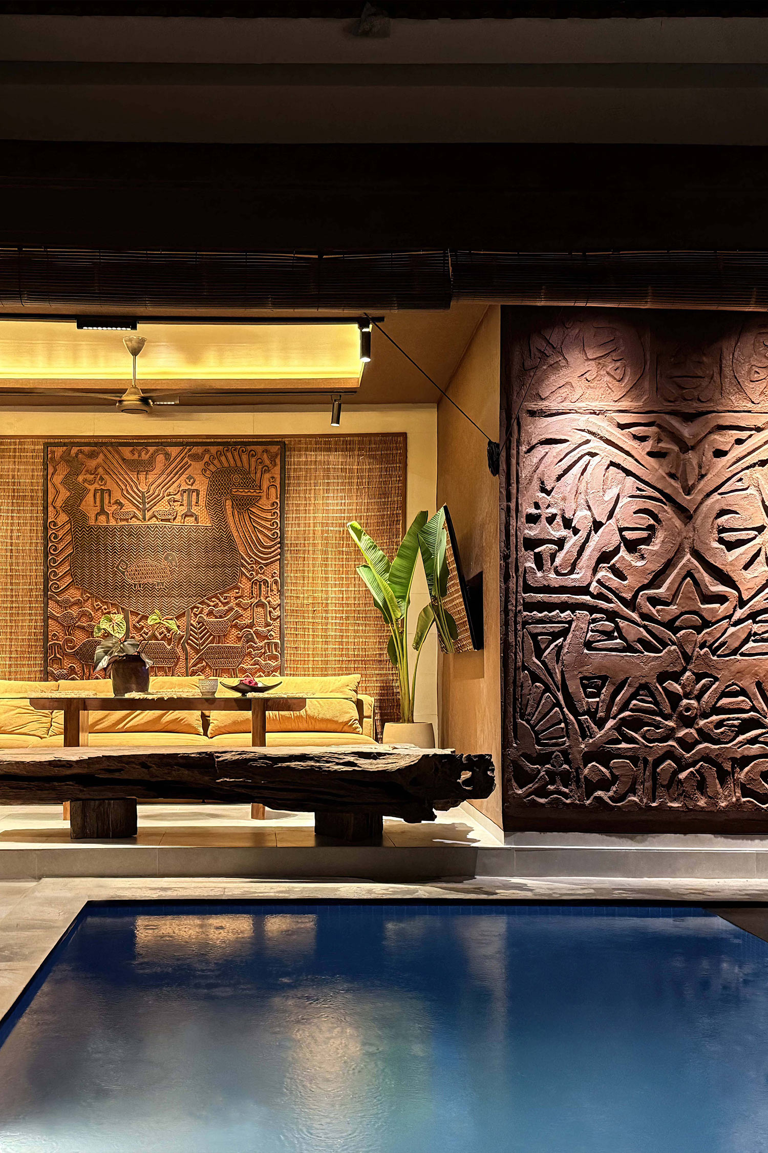 Every detail has been carefully thought through and crafted specifically for this place. Traditional Balinese ornaments were reimagined and became the foundation of the sculptural wall décor.