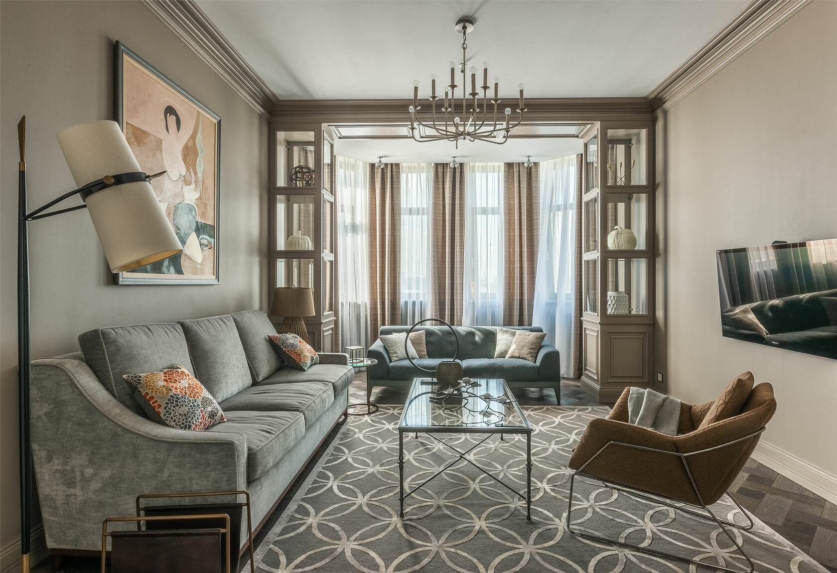 The interior boasts a palette of soothing pastel hues, predominantly encompassing a refined spectrum of gray-beige tones, pleasing to the eye. Given the contrasting tastes of the owners, compromises were a constant necessity, leading to engaging discussions. Yet, through collaborative efforts, we achieved a harmonious balance that satisfied both parties.