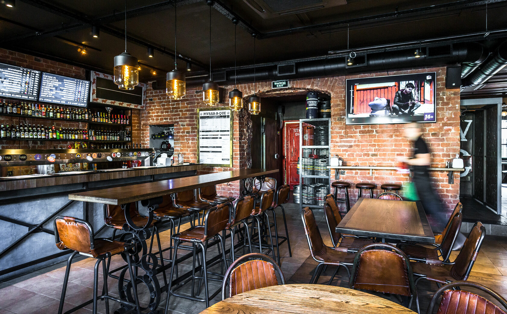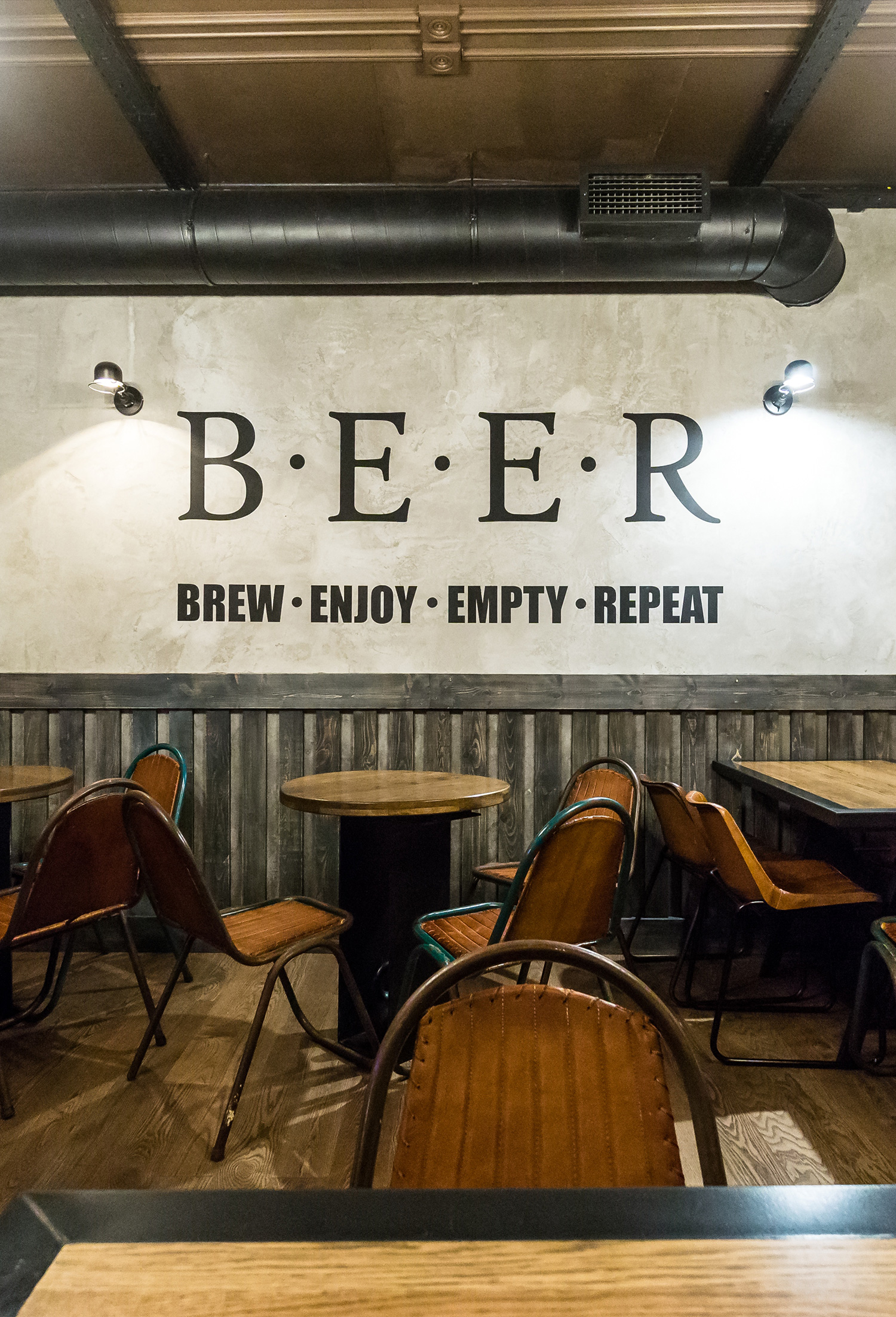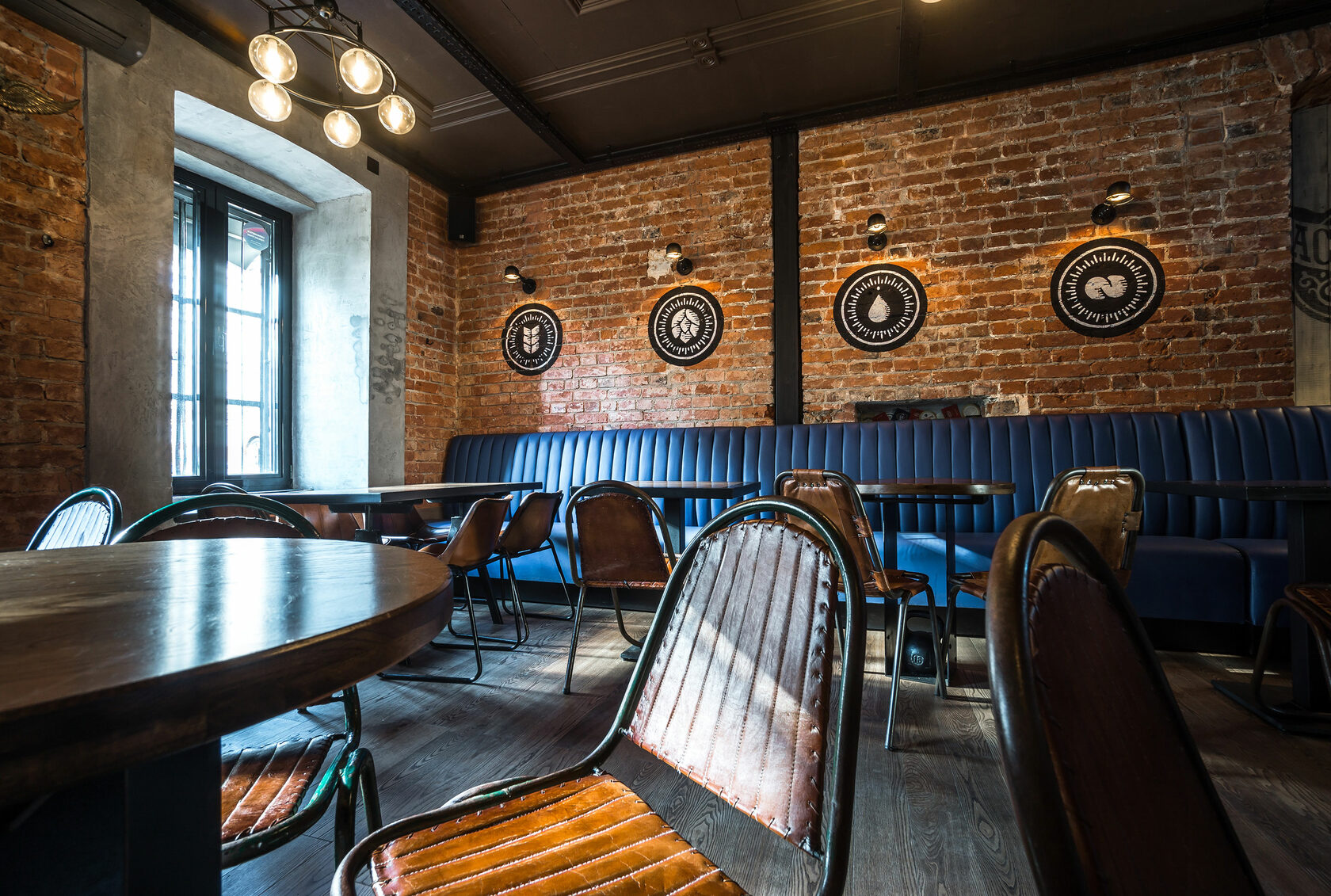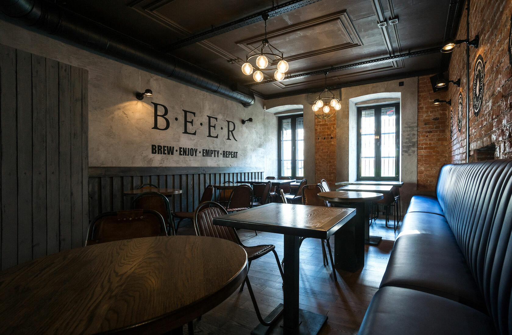Так как студия INTRO by Chak занимается проектированием жилых интерьеров, то заказ на оформление интерьера пивного бара был для нас неожиданным. Кроме того, у заказчика были очень сжатые сроки и минимальный бюджет. Поэтому работа над этим проектом стала для нас профессиональным вызовом. Фактически за месяц мы сделали все ремонтные работы, наполнили помещение мебелью, декором и всем необходимым оборудованием. В итоге мы получили бар, который, по мнению многих любителей этой сети, считается самым уютным и самым продуманным из всех.