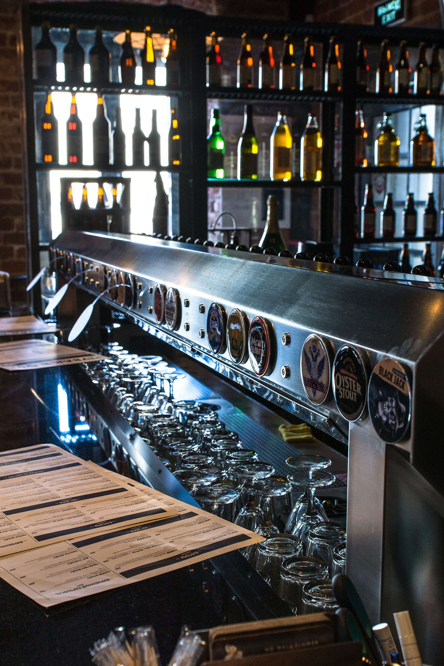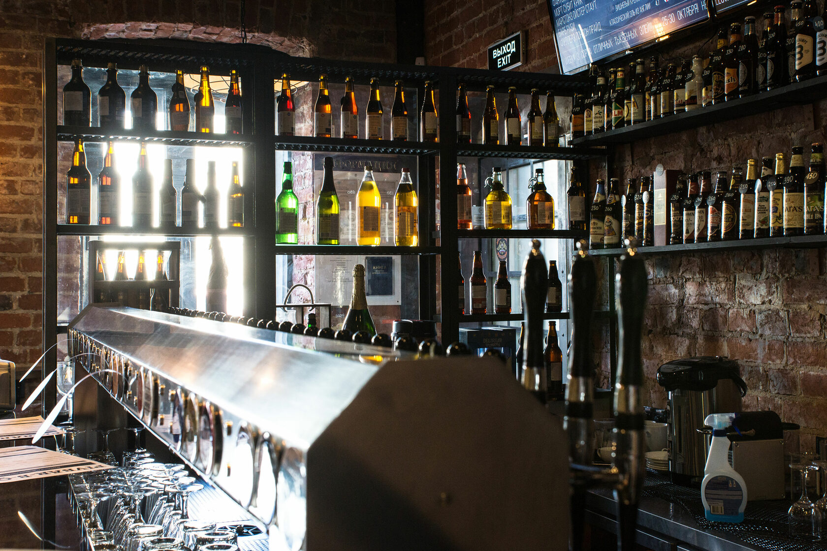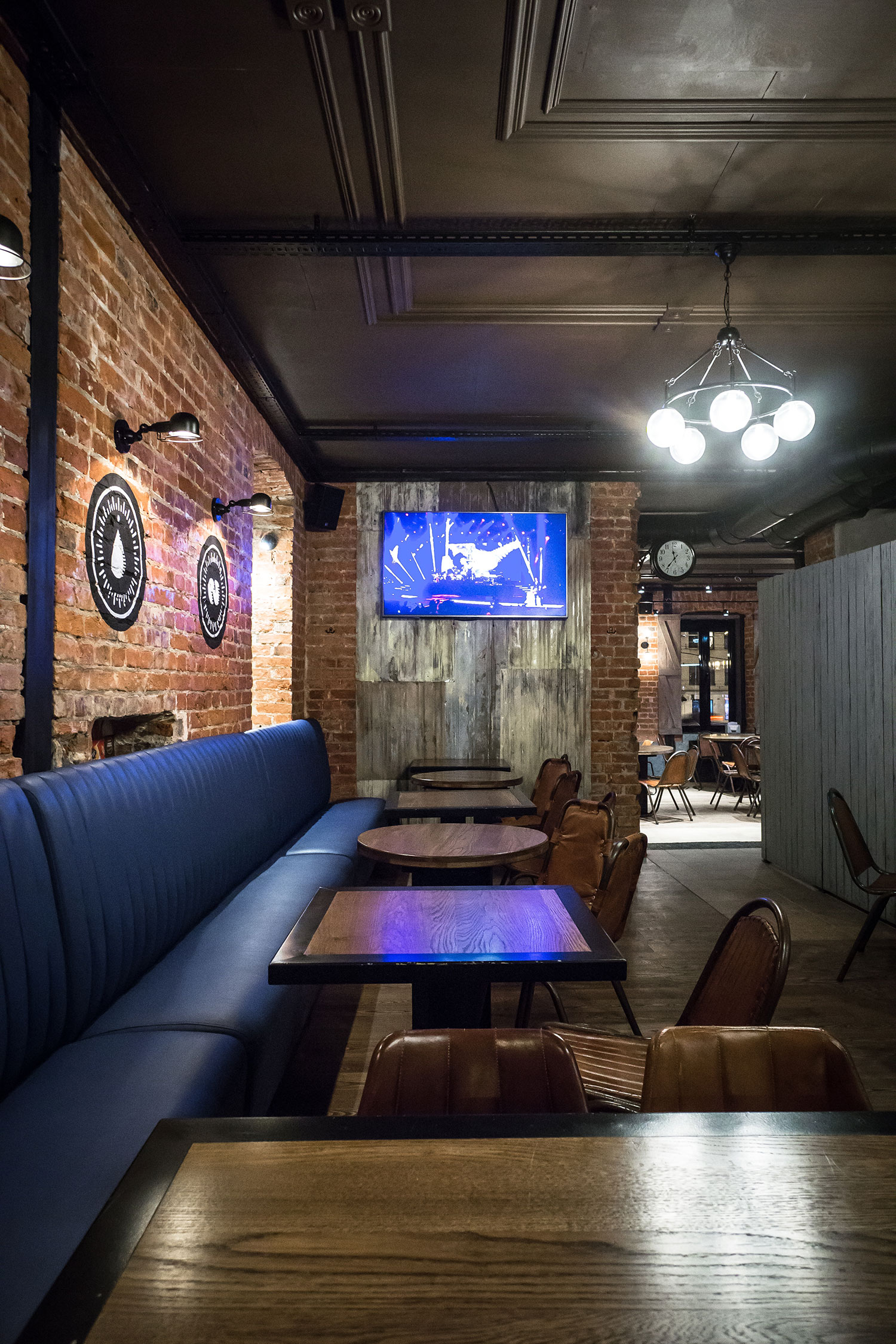 Бар находится в старинном здании. Мы решили использовать стены, которые нам достались непосредственно от самого жилого фонда, в качестве основного элемента декора будущего интерьера бара. Мы зачистили старую кирпичную кладку и оставили кирпич в его первоначальном виде.